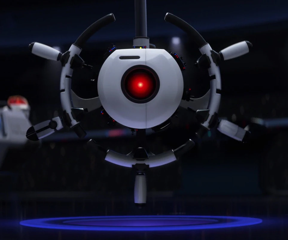 Wall-e est au premier abord plus expressif qu’Eve. Ce robot, plus moderne, semble plus froid et “robotique” mais cache aussi une sensibilité à la fois artistique et émotionnelle que l’on découvre durant le film. L’amour qui naîtra de la rencontre de Wall-e et d’Eve n’en sera que plus puissant, poussant les protagonistes dans une aventure aux enjeux dépassant grandement ce pour quoi ils ont été créés. Ils devront faire face au méchant de l’histoire, référence très subtile à 2001, l’Odyssée de l’espace. Un robot bête et méchant qui donnerait des sueurs froides dans les cauchemars de James Cameron.