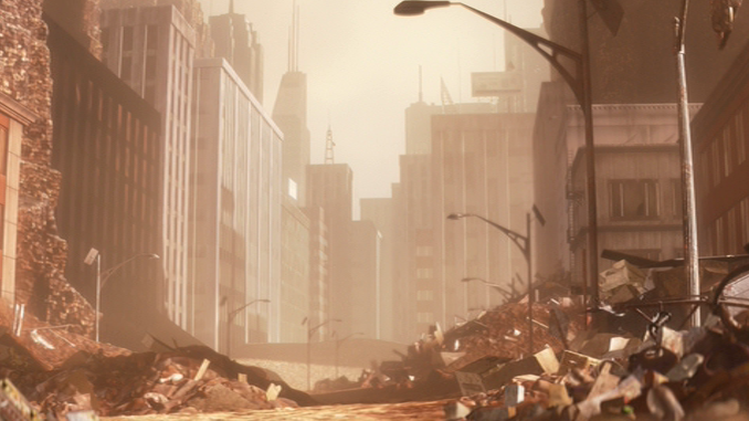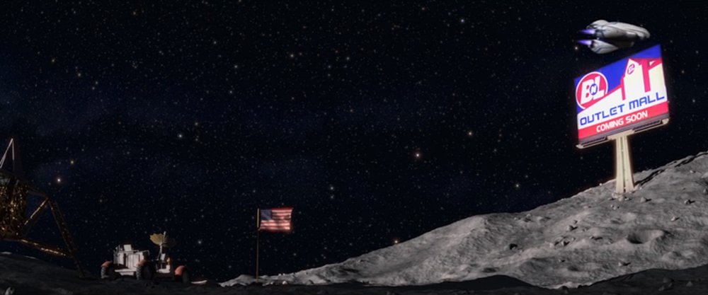Si le public est choqué par l’absence de présence humaine sur Terre, il ne peut cependant pas fermer les yeux sur l’omniprésence des pires immondices laissées par l’homme. La Terre n’est plus qu’une décharge généralisée, rendue inhabitable par l’absurdité de la surconsommation, ce qui semble être des gratte-ciel se révèle être des empilements de déchets. Le ciel autrefois clair laisse place à une palette de couleurs jaunâtres, la planète bleue est devenue jaune.